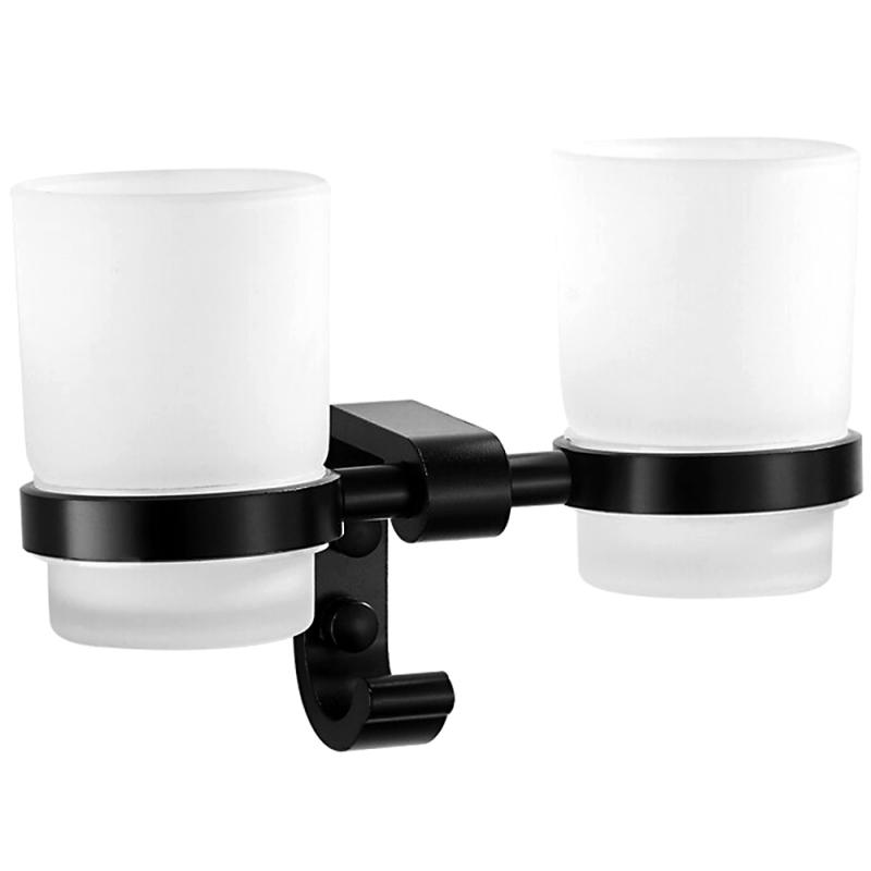 Держатель с двумя стаканами торговой марки "Ledeme" украсит интерьер ванной комнаты за счет лаконичного дизайна.